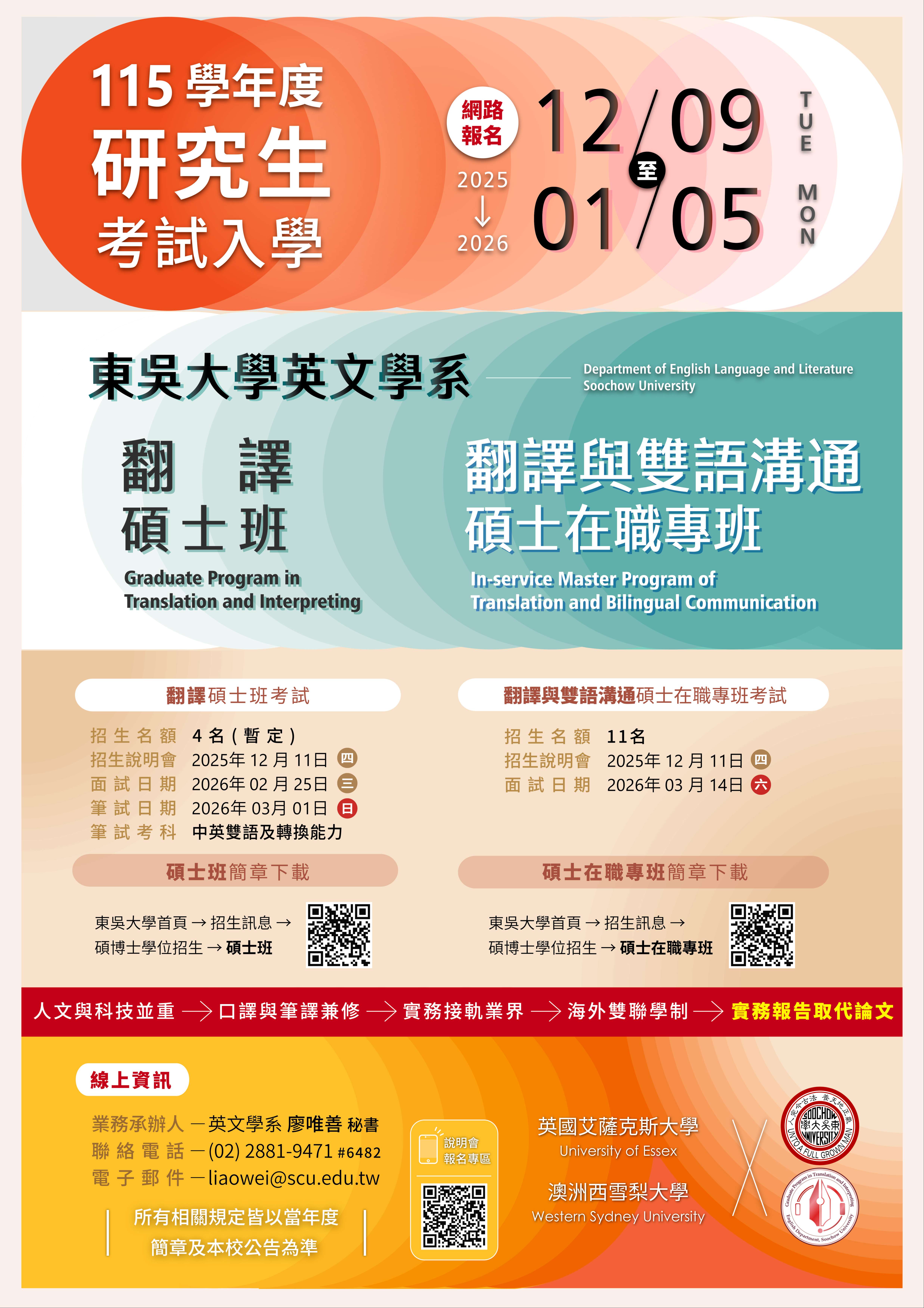 三、本系另將於114年12月11日19:00舉辦招生說明會,該說明會將同步以線上方式舉行,詳情及報名資訊請參考網址: https://forms.gle/i6LsvK92GErYmkH3A