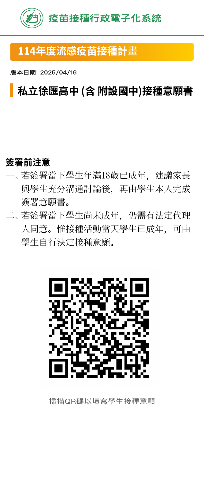 4. 逾期未填寫意願書者將視為不願意在校接種。