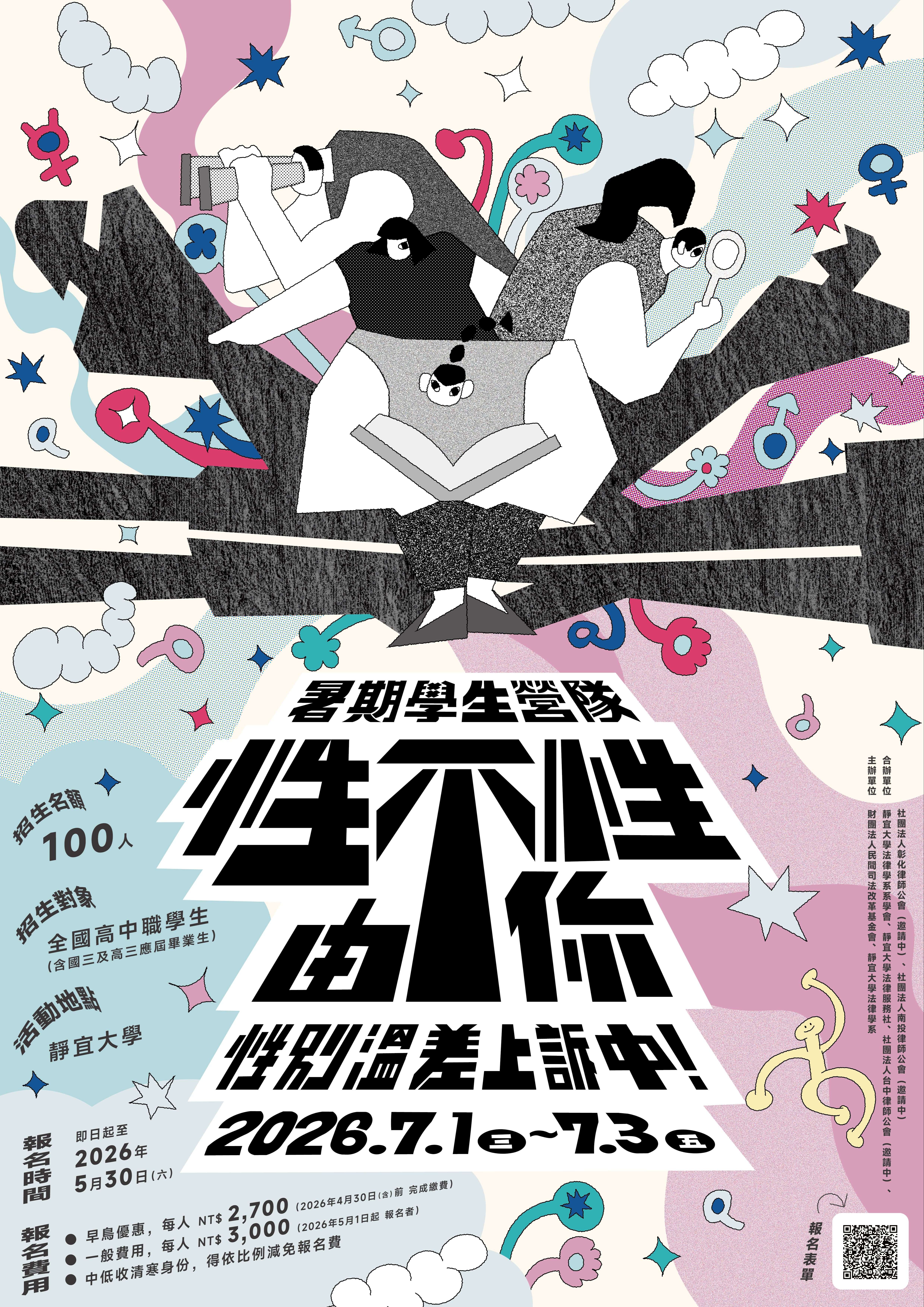 一、營隊宗旨:透過性別與法治議題探討、司法實務體驗及模擬法庭演練,引導學生覺察社會中的性別偏見,培養法治思辨能力與公共參與意識。