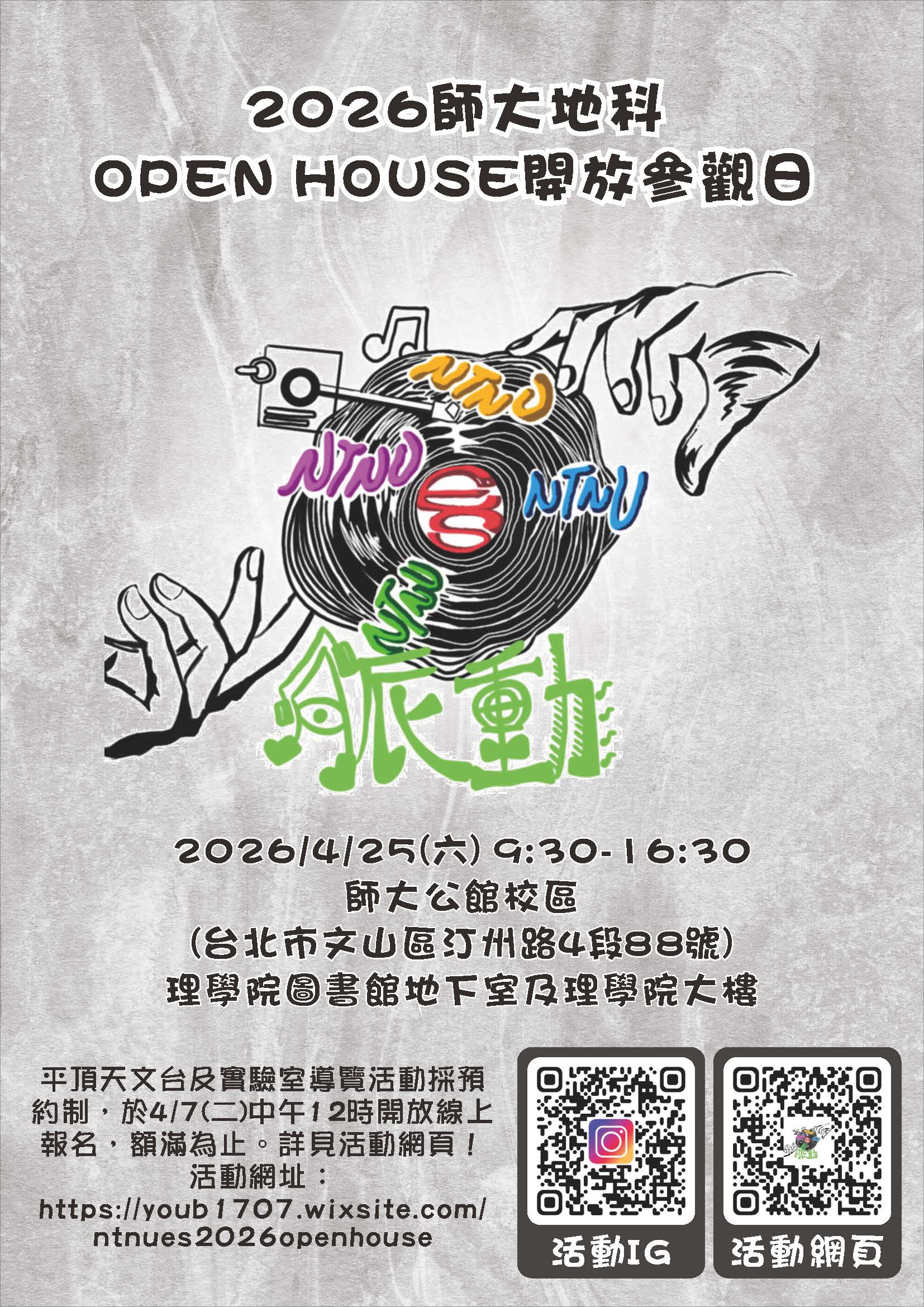 師大地球科學系「2026師大地科開放參觀日」,結 合互動體驗、實境解謎與研究展示,提供一場兼具知識性與趣味性的學習活動。